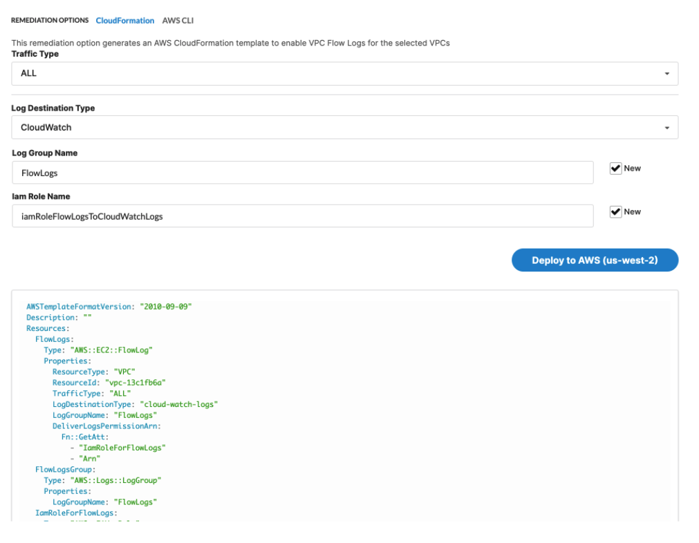 Automatically generated configuration templates to resolve findings Support for CloudFormation and AWS CLI (Terraform support coming soon)